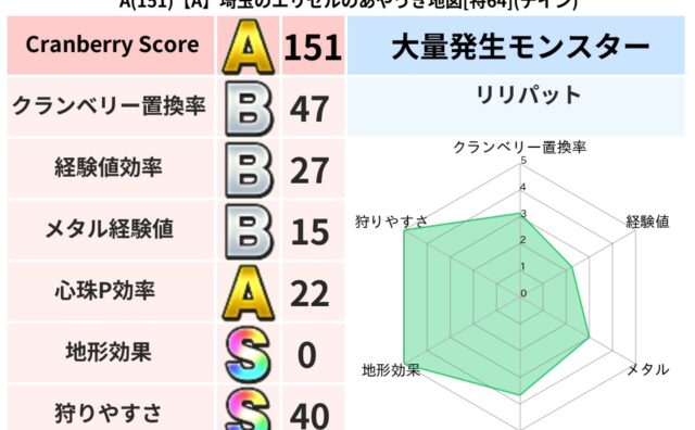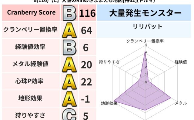 クランベリーボット判定結果の詳細クランベリースコア:103クランベリー置換率:66%大量発生モンスター:リリパットデイン超耐性(0%)こころ道 完全一致モンスターキースドラゴン: 大魔導士(理力道Lv5)つかいま: 大魔導士(理力道Lv5)...