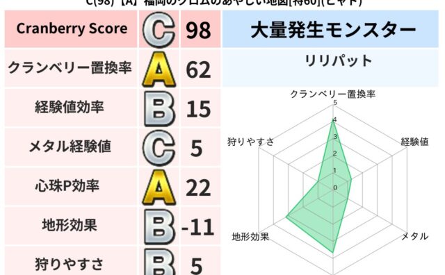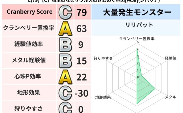 クランベリーボット判定結果の詳細クランベリースコア:115クランベリー置換率:63%大量発生モンスター:リリパットジバリア超耐性(0%)こころ道 完全一致モンスターどくろあらい: ゴッドハンド(守護道Lv5)どれいへいし: ドラゴン(人道L...
