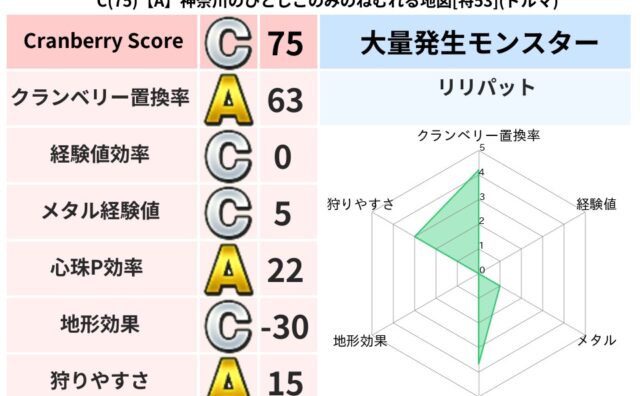 クランベリーボット判定結果の詳細クランベリースコア:75クランベリー置換率:63%大量発生モンスター:リリパットドルマ超耐性(52%)系統狩り(43%)こころ道 完全一致モンスターねこまどうニンジャ(風道Lv5)デビルアーマー大神官(舞道L...