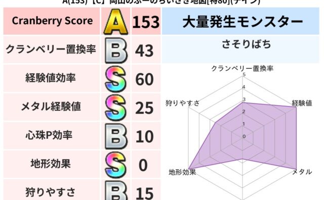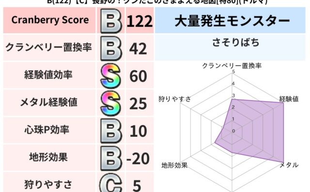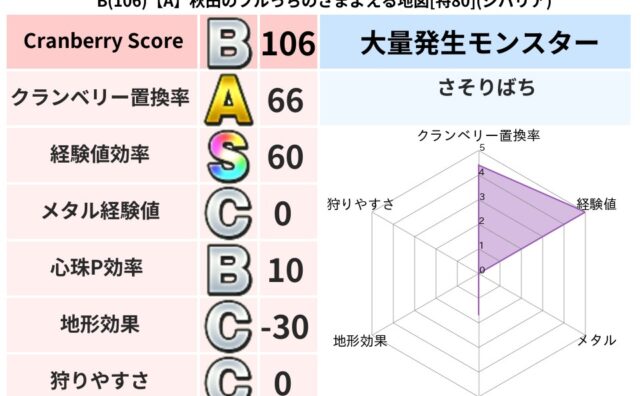 クランベリーボット判定結果の詳細クランベリースコア93クランベリー置換率62%大量発生モンスターさそりばち,ぶっちズキーニャ超耐性ジバリア(38%)こころ道 完全一致モンスターどくろあらいゴッドハンド(守護道Lv5)しりょうのきし大神官(舞...