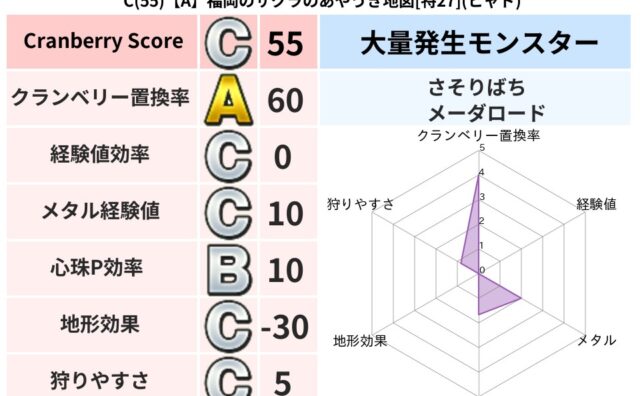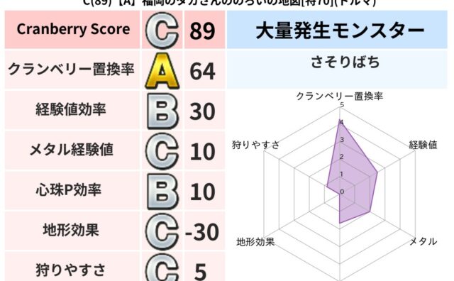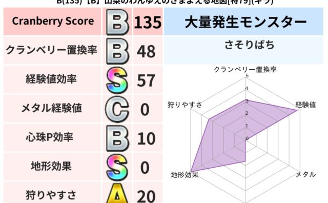クランベリーボット判定結果の詳細クランベリースコア202クランベリー置換率79%大量発生モンスターじごくのもんばん,さそりばち超耐性バギ(0%)こころ道 完全一致モンスターストーンマンゴッドハンド(守護道Lv5)キースドラゴン大魔道士(理力...