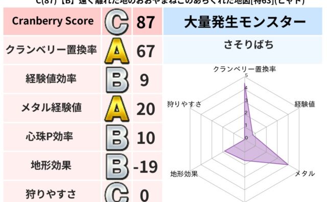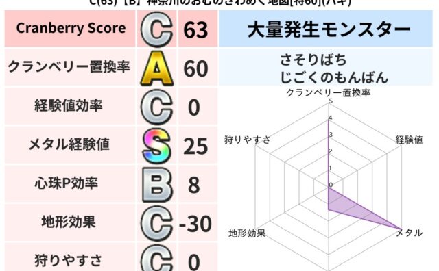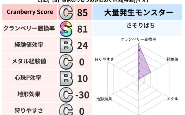 クランベリーボット判定結果の詳細クランベリースコア:102クランベリー置換率:67%大量発生モンスター:さそりばちヒャド超耐性(16%)こころ道 完全一致モンスターさそりばちニンジャ(波道Lv10),ドラゴン(共通Lv1)ミニデーモン大魔導...