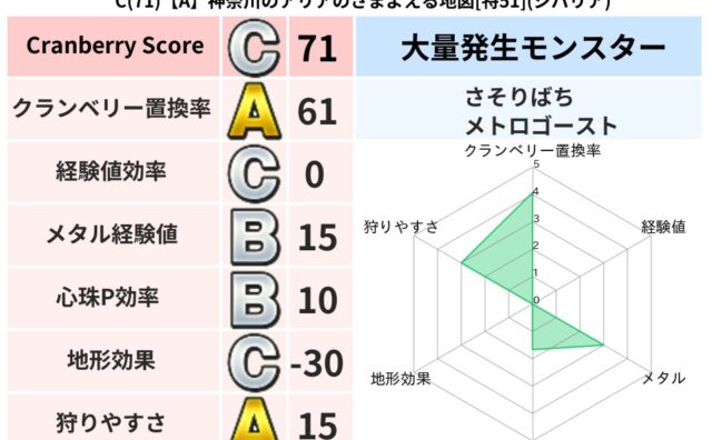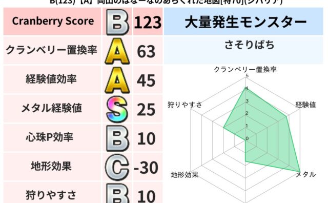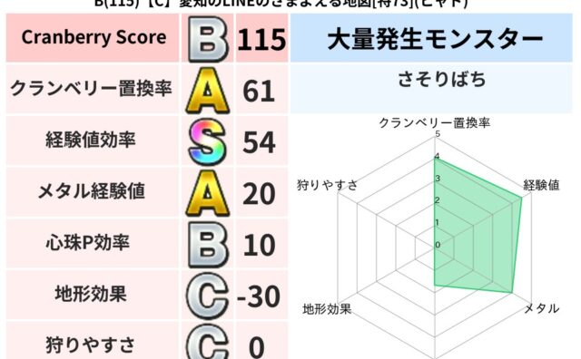 クランベリーボット判定結果の詳細クランベリースコア:115クランベリー置換率:61%大量発生モンスター:さそりばちヒャド超耐性(47%)こころ道 完全一致モンスタースカルガルードラゴン(竜道Lv5)キースドラゴン大魔導士(理力道Lv5)グリ...