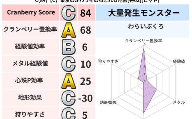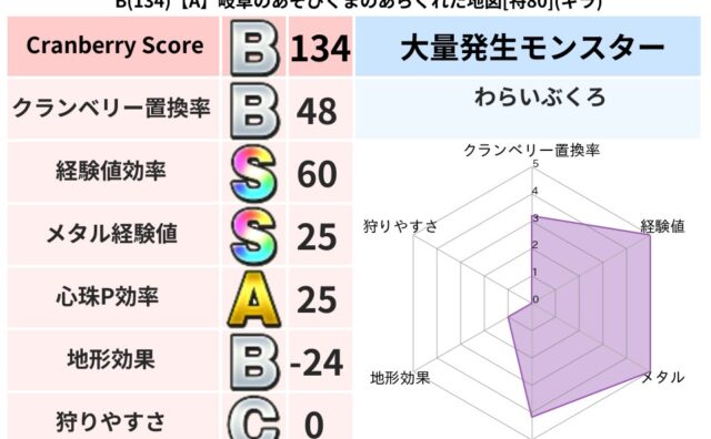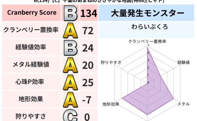 クランベリーボット判定結果の詳細クランベリースコア104クランベリー置換率62%大量発生モンスターわらいぶくろ超耐性バギ(47%)こころ道 完全一致モンスターデビルアーマー大神官(舞道Lv5)ベビーサラマンダ大神官(舞道Lv5)ナイトキャッ...