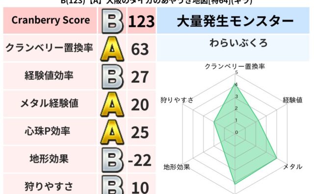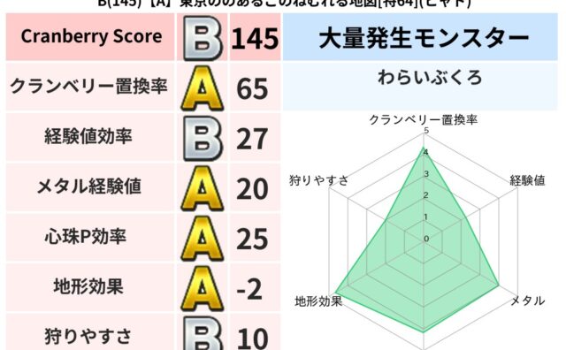 クランベリーボット判定結果の詳細クランベリースコア:123クランベリー置換率:63%大量発生モンスター:わらいぶくろギラ超耐性(18%)超耐性・弱耐性なし:ヒャド,バギこころ道 完全一致モンスターじごくのよろい大神官(舞道Lv10)ダークキ...