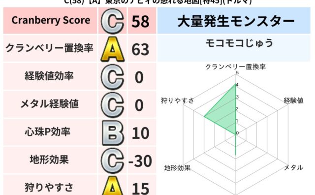 クランベリーボット判定結果の詳細クランベリースコア85クランベリー置換率60%大量発生モンスターモコモコじゅう超耐性ギラ(0%)系統狩りけもの系42%こころ道 完全一致モンスターモコモコじゅうニンジャ(波道Lv10)メイジキメラゴッドハンド...