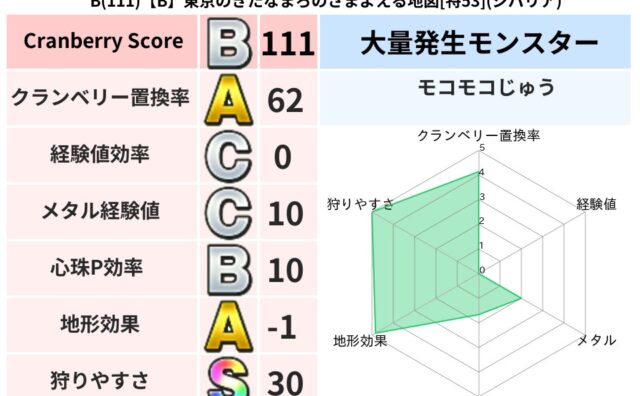 クランベリーボット判定結果の詳細クランベリースコア96クランベリー置換率62%大量発生モンスターモコモコじゅう超耐性ジバリア(1%)系統狩りけもの系63%こころ道 完全一致モンスターデビルアーマー大神官(舞道Lv5)パペットマン天地雷鳴士(...