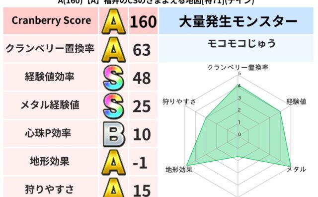 クランベリーボット判定結果の詳細クランベリースコア105クランベリー置換率65%大量発生モンスターモコモコじゅう超耐性バギ(0%)系統狩りけもの系43%こころ道 完全一致モンスターしのどれいゴッドハンド(守護道Lv5)大魔道士(魔力道Lv5...