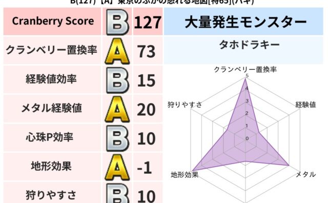 クランベリーボット判定結果の詳細クランベリースコア132クランベリー置換率63%大量発生モンスタータホドラキー超耐性ドルマ(0%)こころ道 完全一致モンスターがいこつ魔剣士(共通Lv1)つかいま大魔道士(理力道Lv5)りゅうき兵天地雷鳴士(...