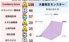 クランベリーボット判定結果の詳細クランベリースコア79クランベリー置換率60%大量発生モンスタータホドラキー超耐性ヒャド(75%)こころ道 完全一致モンスターどくどくゾンビ魔剣士(共通Lv1)ストーンマンゴッドハンド(守護道Lv5)タホドラ...