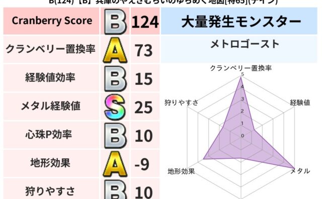 クランベリーボット判定結果の詳細クランベリースコア77クランベリー置換率63%大量発生モンスターメトロゴースト超耐性イオ(5%)系統狩りゾンビ系41%こころ道 完全一致モンスターギズモ天地雷鳴士(共通Lv1)しりょうのきし大神官(舞道Lv5...