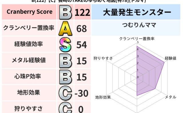クランベリーボット判定結果の詳細クランベリースコア109クランベリー置換率65%大量発生モンスターつむりんママ,ガニメデス超耐性バギ(29%)こころ道 完全一致モンスターしのどれいゴッドハンド(守護道Lv5)大魔道士(魔力道Lv5)スカルガ...