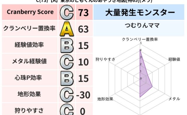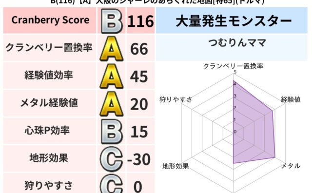 クランベリーボット判定結果の詳細クランベリースコア:108クランベリー置換率:74%大量発生モンスター:つむりんママ,バアルゼブブヒャド超耐性(56%)こころ道 完全一致モンスターねこまどうニンジャ(風道Lv5)どくイモムシニンジャ(波道L...