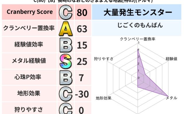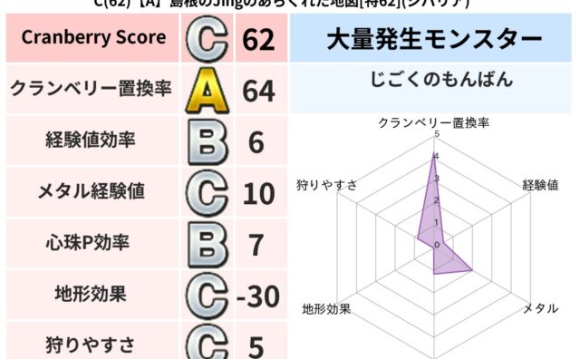 クランベリーボット判定結果の詳細クランベリースコア:95クランベリー置換率:63%大量発生モンスター:じごくのもんばんドルマ超耐性(46%)こころ道 完全一致モンスタードロヌーバニンジャ(波道Lv5)フレイム守り人(ささえ道Lv5)デビルア...