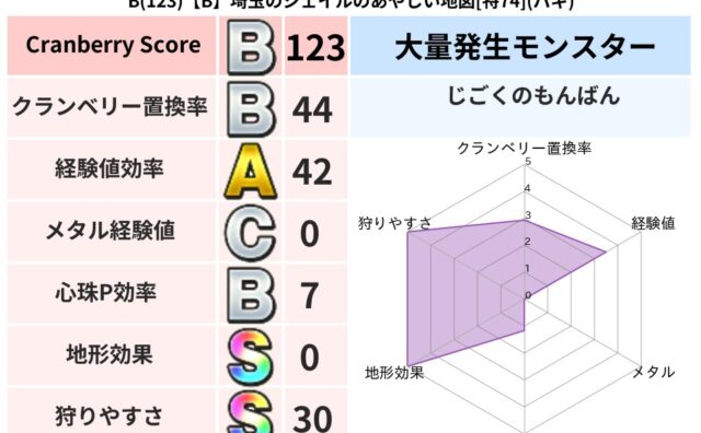 クランベリーボット判定結果の詳細クランベリースコア123クランベリー置換率44%大量発生モンスターじごくのもんばん超耐性バギ(0%)こころ道 完全一致モンスターミニデーモン大魔道士(魔力道Lv10)エビルソーサラーゴッドハンド(守護道Lv1...