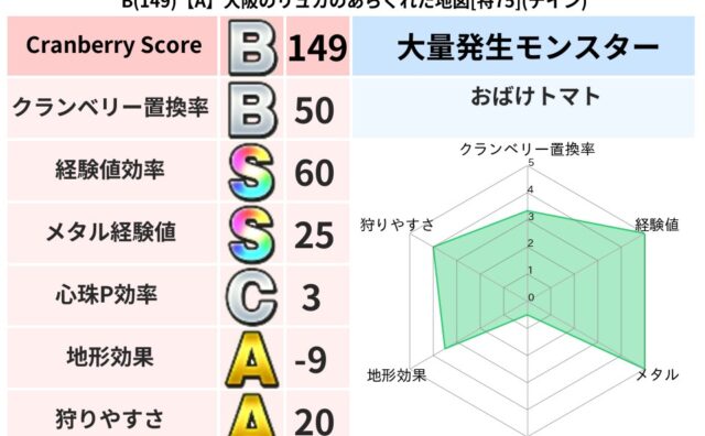 地図判定結果 B(147)【C】埼玉のテートクのかわいい地図[特69](バギ) クランベリーボット判定結果の詳細クランベリースコア:147クランベリー置換率:47%大量発生モンスター:おばけトマトバギ超耐性(0%)こころ道 完全一致モンスターベロニャーゴ: 大魔導士(理力道Lv5)ストーンマン: ゴッドハンド(守護道L... 2025/02/02 21:06 地図判定結果