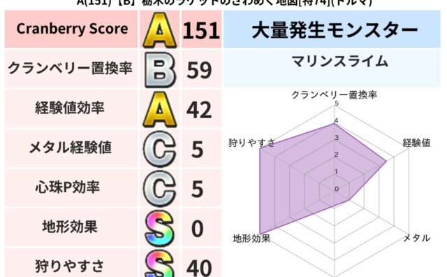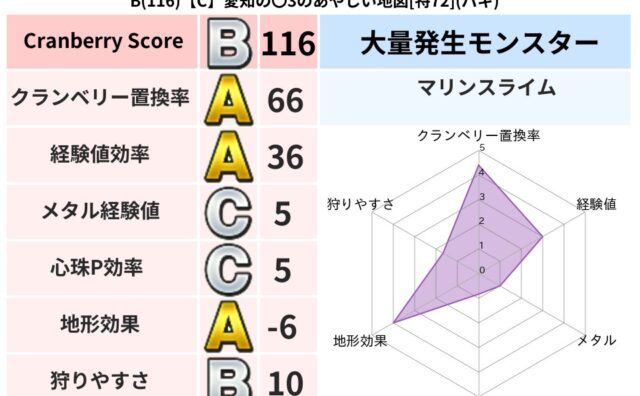 クランベリーボット判定結果の詳細クランベリースコア151クランベリー置換率51%大量発生モンスターマリンスライム,岩とびあくま,あらくれチャッピー超耐性メラ(0%)こころ道 完全一致モンスターねこまどうニンジャ(風道Lv5)しりょうのきし大...