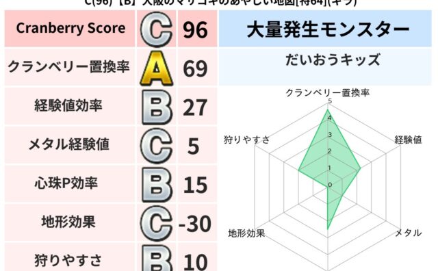 クランベリーボット判定結果の詳細クランベリースコア81クランベリー置換率66%大量発生モンスターだいおうキッズ超耐性ドルマ(46%)こころ道 完全一致モンスタードロヌーバニンジャ(波道Lv5)ブラウニー守り人(共通Lv1)シャドーニンジャ(...