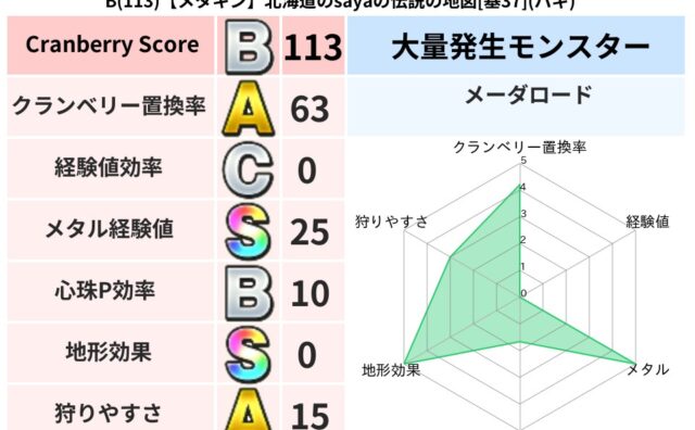 地図判定結果 B(113)【メタキン】北海道のsayaの伝説の地図[基37](バギ) クランベリーボット判定結果の詳細クランベリースコア113クランベリー置換率63%大量発生モンスターメーダロード超耐性バギ(0%)超耐性・弱耐性なしジバリアこころ道 完全一致モンスターキースドラゴン大魔道士(理力道Lv5)フロストギズモ魔剣士... 2025/10/04 13:51 地図判定結果