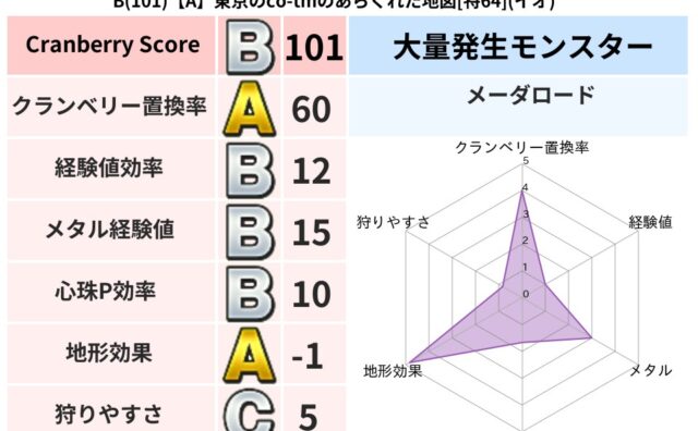 クランベリーボット判定結果の詳細クランベリースコア101クランベリー置換率60%大量発生モンスターメーダロード超耐性イオ(1%)こころ道 完全一致モンスターデビルアーマー大神官(舞道Lv5)しりょうのきし大神官(舞道Lv5)ベビーサラマンダ...