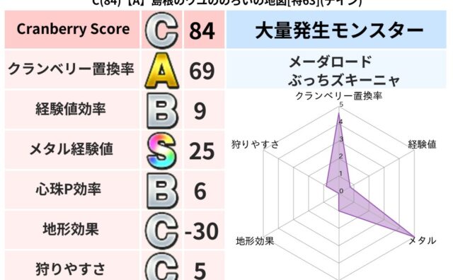 クランベリーボット判定結果の詳細クランベリースコア84クランベリー置換率69%大量発生モンスターメーダロード,ぶっちズキーニャ超耐性デイン(58%)こころ道 完全一致モンスターデビルアーマー大神官(舞道Lv5)びっくりサタン大神官(共通Lv...