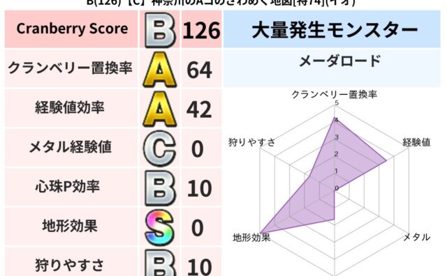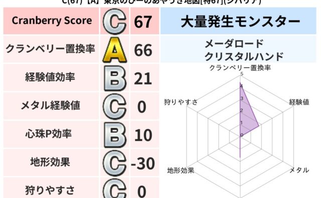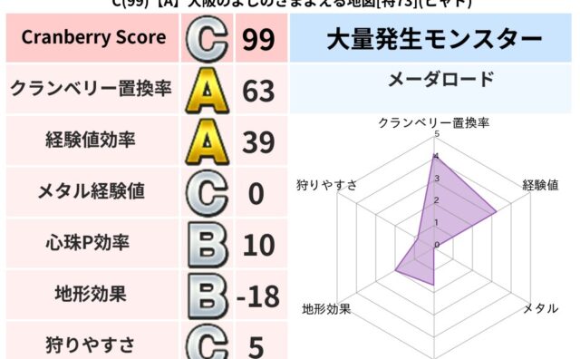 クランベリーボット判定結果の詳細クランベリースコア99クランベリー置換率63%大量発生モンスターメーダロード超耐性ヒャド(15%)超耐性・弱耐性なしバギこころ道 完全一致モンスターみならいあくまニンジャ(風道Lv5)ギズモ天地雷鳴士(共通L...