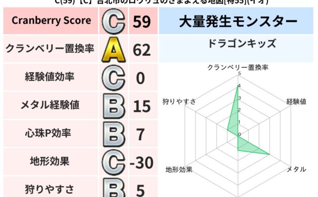 地図判定結果 B(135)【A】千葉のAkaRinのあらくれた地図[特75](ジバリア) クランベリーボット判定結果の詳細クランベリースコア135クランベリー置換率60%大量発生モンスタードラゴンキッズ超耐性ジバリア(6%)こころ道 完全一致モンスターどれいへいしドラゴン(人道Lv5)キースドラゴン大魔道士(理力道Lv5)つかい... 2025/10/16 09:01 地図判定結果