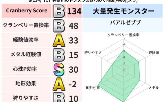 スコアA A(165)【A】岐阜のおんせんコギのあやしい地図[特73](ドルマ) クランベリーボット判定結果の詳細クランベリースコア165クランベリー置換率46%大量発生モンスターバアルゼブブ超耐性ドルマ(0%)超耐性・弱耐性なしデインこころ道 完全一致モンスターベロニャーゴ大魔道士(理力道Lv5)しりょうのきし大神官(... 2025/10/17 00:08 スコアA地図判定結果