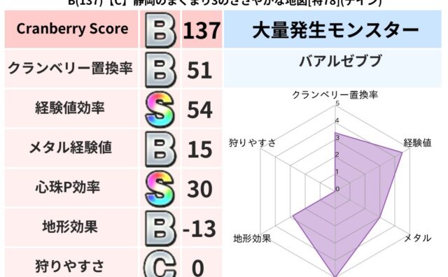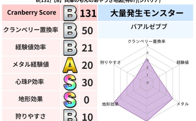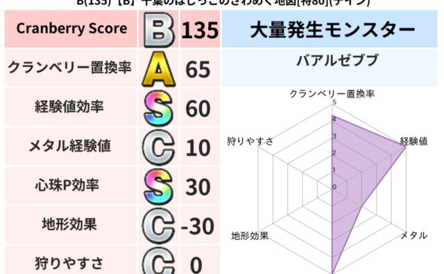 クランベリーボット判定結果の詳細クランベリースコア102クランベリー置換率65%大量発生モンスターバアルゼブブ超耐性バギ(15%)こころ道 完全一致モンスタードロヌーバニンジャ(波道Lv5)キースドラゴン大魔道士(理力道Lv5)オーク大神官...