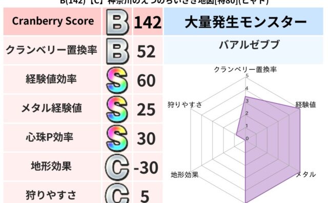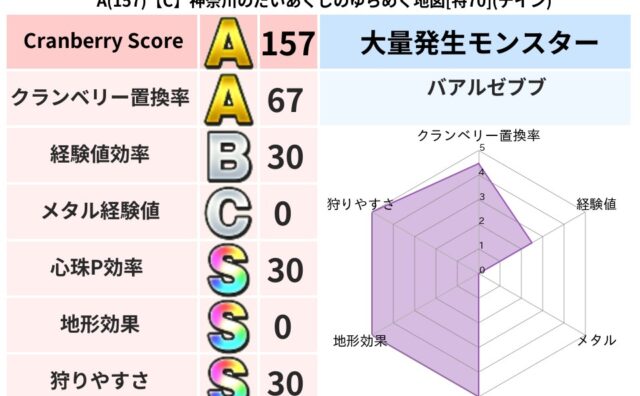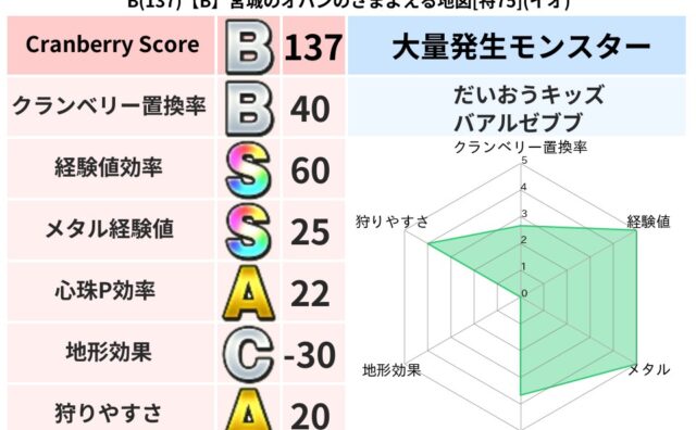 クランベリーボット判定結果の詳細クランベリースコア142クランベリー置換率52%大量発生モンスターバアルゼブブ超耐性ヒャド(79%)超耐性・弱耐性なしジバリアこころ道 完全一致モンスターしりょうのきし大神官(舞道Lv5)てっこうまじん大神官...