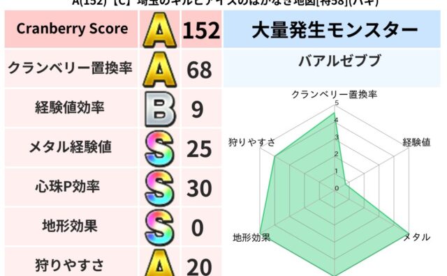 クランベリーボット判定結果の詳細クランベリースコア:173クランベリー置換率:48%大量発生モンスター:バアルゼブブデイン超耐性(0%)超耐性・弱耐性なし:イオ,バギ,ジバリアこころ道 完全一致モンスターねこまどう: ニンジャ(風道Lv5)...