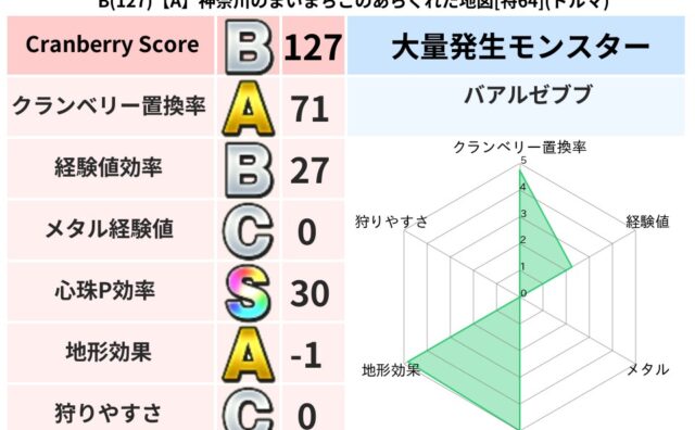 クランベリーボット判定結果の詳細クランベリースコア78クランベリー置換率68%大量発生モンスターバアルゼブブ超耐性メラ(74%)こころ道 完全一致モンスターしのどれいゴッドハンド(守護道Lv5)大魔道士(魔力道Lv5)くさった死体ゴッドハン...
