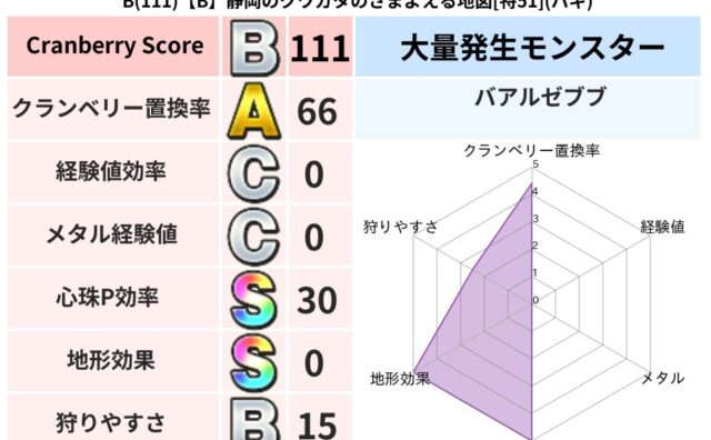 クランベリーボット判定結果の詳細クランベリースコア111クランベリー置換率66%大量発生モンスターバアルゼブブ超耐性バギ(0%)こころ道 完全一致モンスターどくどくゾンビ魔剣士(共通Lv1)ブラックチャックドラゴン(竜道Lv10)テンツク大...