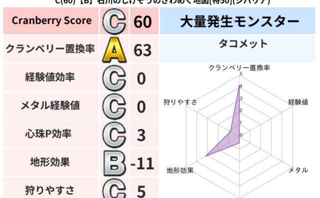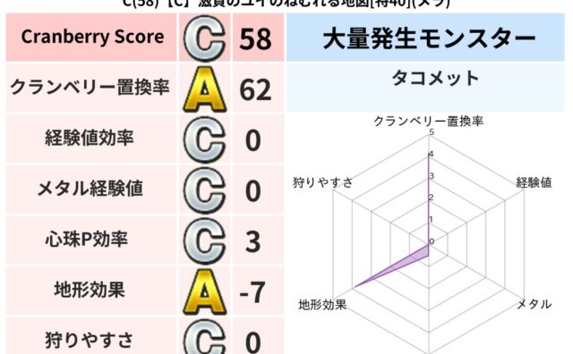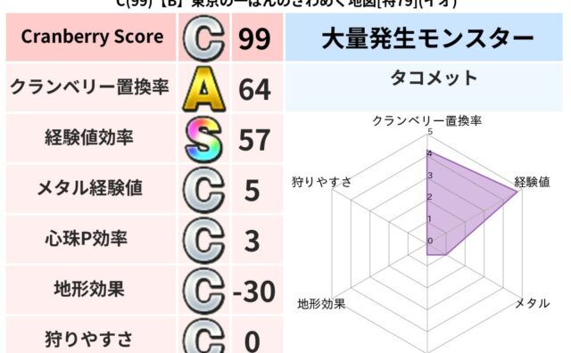 クランベリーボット判定結果の詳細クランベリースコア125クランベリー置換率67%大量発生モンスタータコメット超耐性ギラ(69%)系統狩り水系42%こころ道 完全一致モンスタースカルガルードラゴン(竜道Lv5)しりょうのきし大神官(舞道Lv5...