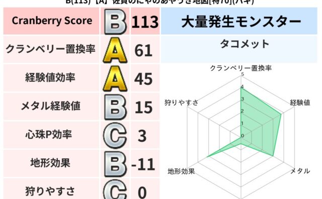 クランベリーボット判定結果の詳細クランベリースコア:109クランベリー置換率:61%大量発生モンスター:タコメットヒャド超耐性(58%)こころ道 完全一致モンスターどくろあらい: ゴッドハンド(守護道Lv5)ストーンマン: ゴッドハンド(守...