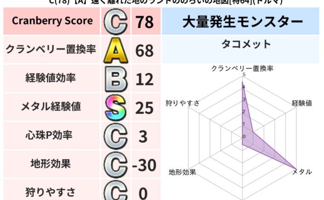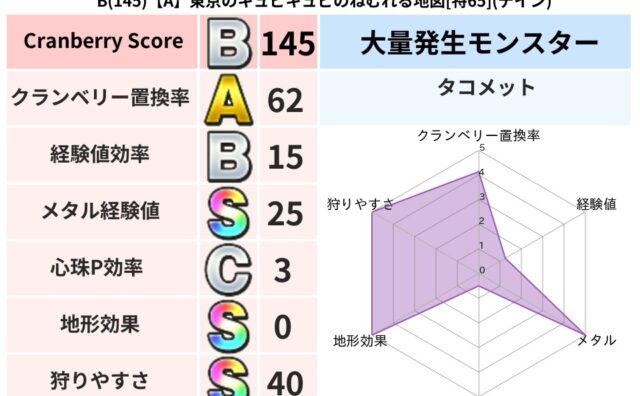 クランベリーボット判定結果の詳細クランベリースコア:107クランベリー置換率:61%大量発生モンスター:さそりばち,タコメットイオ超耐性(0%)こころ道 完全一致モンスターどくイモムシ: ニンジャ(波道Lv5)ブラウニー: 守り人(共通Lv...