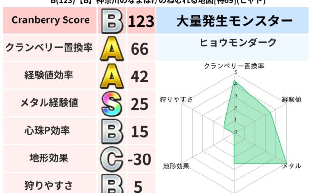 クランベリーボット判定結果の詳細クランベリースコア165クランベリー置換率45%大量発生モンスターヒョウモンダーク超耐性バギ(0%)超耐性・弱耐性なしデインドルマ系統狩り水系52%こころ道 完全一致モンスターベビーサラマンダ大神官(舞道Lv...