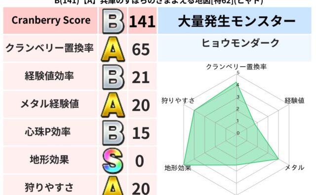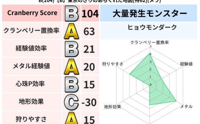 クランベリーボット判定結果の詳細クランベリースコア:141クランベリー置換率:65%大量発生モンスター:ヒョウモンダークヒャド超耐性(0%)系統狩り(57%)こころ道 完全一致モンスターベビーサラマンダ大神官(舞道Lv5)キラーパンサー大神...