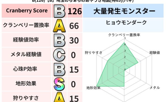 クランベリーボット判定結果の詳細クランベリースコア103クランベリー置換率78%大量発生モンスターヒョウモンダーク超耐性デイン(53%)こころ道 完全一致モンスタードロヌーバニンジャ(波道Lv5)かっちゅうアリ魔人(共通Lv1)ドロル大神官...