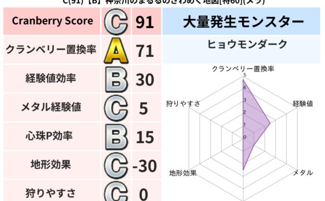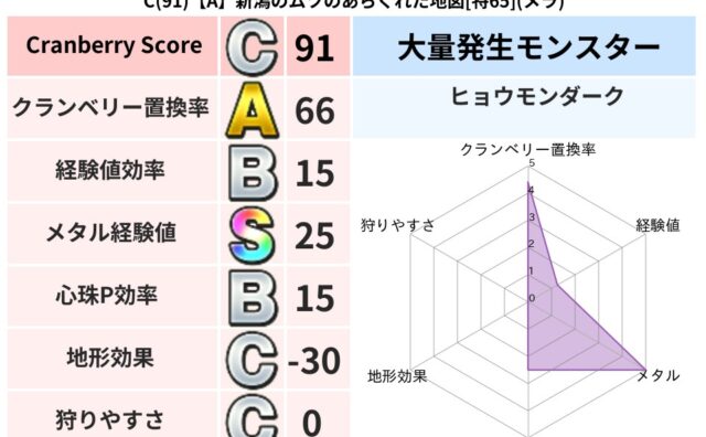 クランベリーボット判定結果の詳細クランベリースコア:86クランベリー置換率:63%大量発生モンスター:ヒョウモンダークバギ超耐性(46%)こころ道 完全一致モンスターキースドラゴン大魔導士(理力道Lv5)じごくのよろい大神官(舞道Lv10)...