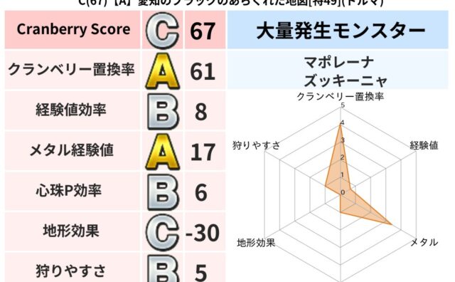 クランベリーボット判定結果の詳細クランベリースコア:159クランベリー置換率:72%大量発生モンスター:マポレーナギラ超耐性(0%)こころ道 完全一致モンスターデビルアーマー: 大神官(舞道Lv5)おおさそり: ゴッドハンド(武道Lv5),...