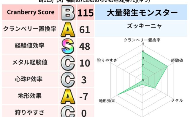 地図判定結果 B(107)【A】富山のレッドのあやうき地図[特74](ジバリア) クランベリーボット判定結果の詳細クランベリースコア107クランベリー置換率65%大量発生モンスターズッキーニャ超耐性ジバリア(15%)こころ道 完全一致モンスターどくイモムシニンジャ(波道Lv5)ストーンマンゴッドハンド(守護道Lv5)どろ... 2025/10/14 14:17 地図判定結果
