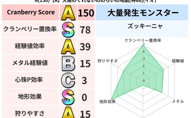 スコアA A(150)【A】大阪のくれないののろいの地図[特68](イオ) クランベリーボット判定結果の詳細クランベリースコア150クランベリー置換率78%大量発生モンスターズッキーニャ超耐性イオ(0%)超耐性・弱耐性なしドルマこころ道 完全一致モンスターパペットマン天地雷鳴士(天道Lv5)ストーンマンゴッドハンド... 2025/09/14 21:20 スコアA地図判定結果置換率S