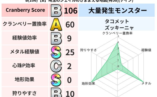 地図判定結果 B(106)【B】埼玉のジェイルのさまよえる地図[特58](デイン) クランベリーボット判定結果の詳細クランベリースコア:106クランベリー置換率:60%大量発生モンスター:タコメット,ズッキーニャデイン超耐性(0%)こころ道 完全一致モンスターしのどれいゴッドハンド(守護道Lv5),大魔導士(魔力道Lv5)... 2025/09/30 21:55 地図判定結果