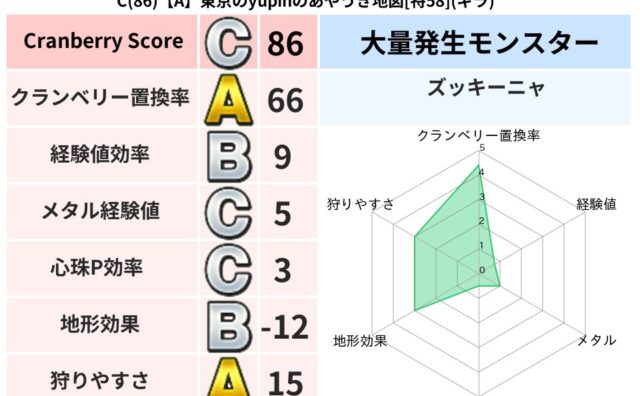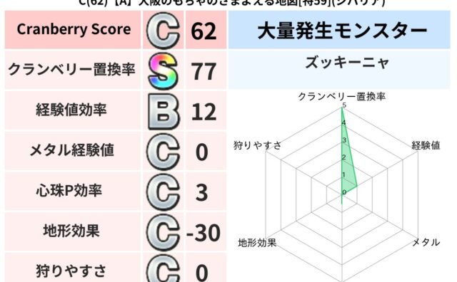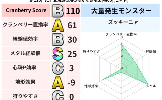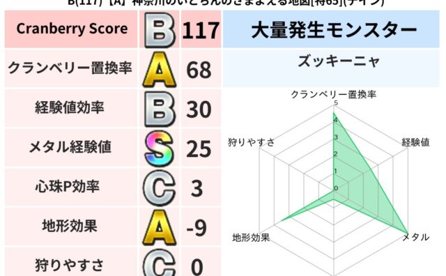 クランベリーボット判定結果の詳細クランベリースコア102クランベリー置換率68%大量発生モンスターズッキーニャ超耐性デイン(7%)こころ道 完全一致モンスターしりょうのきし大神官(舞道Lv5)てっこうまじん大神官(舞道Lv10)じんめんじゅ...