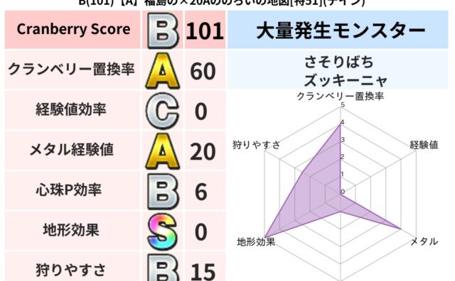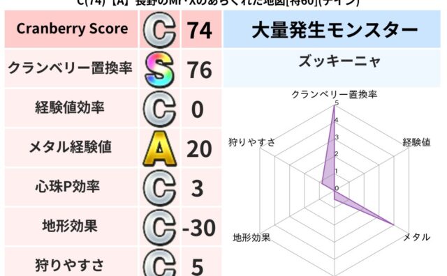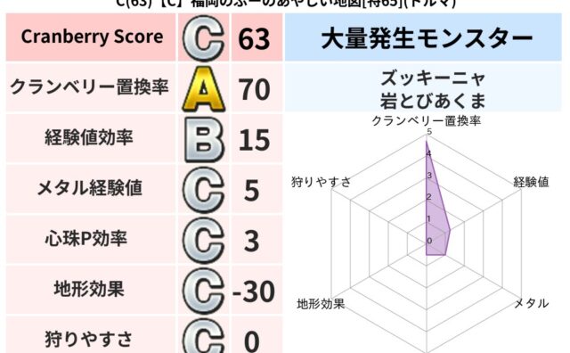 クランベリーボット判定結果の詳細クランベリースコア107クランベリー置換率63%大量発生モンスターズッキーニャ超耐性デイン(0%)こころ道 完全一致モンスターブラウニー守り人(共通Lv1)おおさそりゴッドハンド(武道Lv5)ドラゴン(共通L...