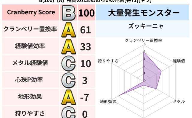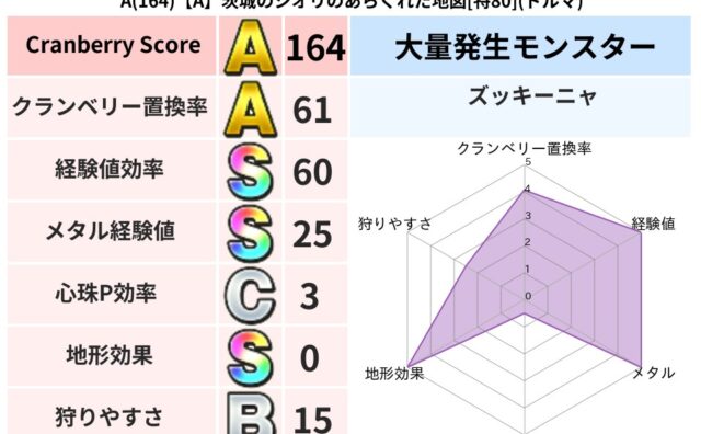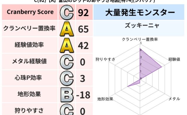 クランベリーボット判定結果の詳細クランベリースコア107クランベリー置換率62%大量発生モンスターズッキーニャ超耐性ヒャド(93%)超耐性・弱耐性なしジバリアこころ道 完全一致モンスターしりょうのきし大神官(舞道Lv5)キースドラゴン大魔道...