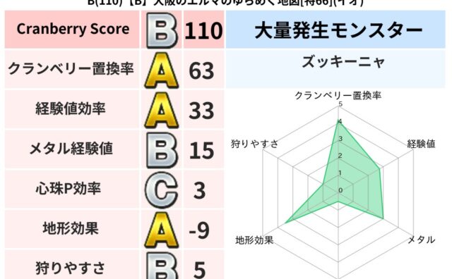 クランベリーボット判定結果の詳細クランベリースコア:123クランベリー置換率:45%大量発生モンスター:ズッキーニャバギ超耐性(0%)超耐性・弱耐性なし:ドルマこころ道 完全一致モンスターキメラ: 大魔導士(共通Lv1)どくどくゾンビ: 魔...