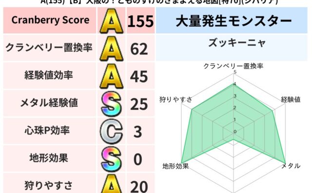 クランベリーボット判定結果の詳細クランベリースコア:124クランベリー置換率:64%大量発生モンスター:ズッキーニャメラ超耐性(0%)こころ道 完全一致モンスターくさった死体ゴッドハンド(守護道Lv5),大魔導士(魔力道Lv5)リカントマム...