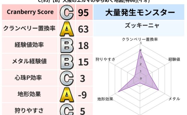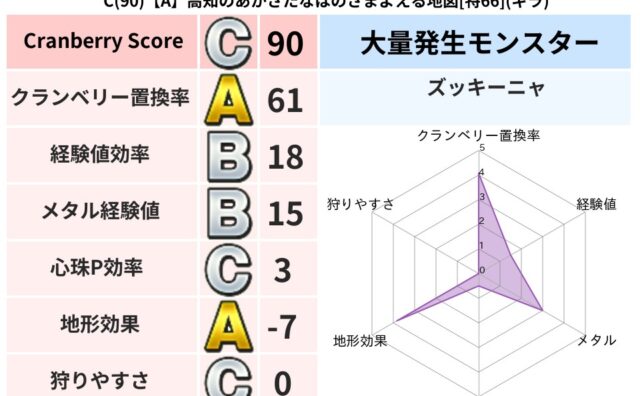クランベリーボット判定結果の詳細クランベリースコア148クランベリー置換率76%大量発生モンスターメーダロード,ズッキーニャ超耐性バギ(0%)こころ道 完全一致モンスターどくどくゾンビ魔剣士(共通Lv1)かっちゅうアリ魔人(共通Lv1)キー...